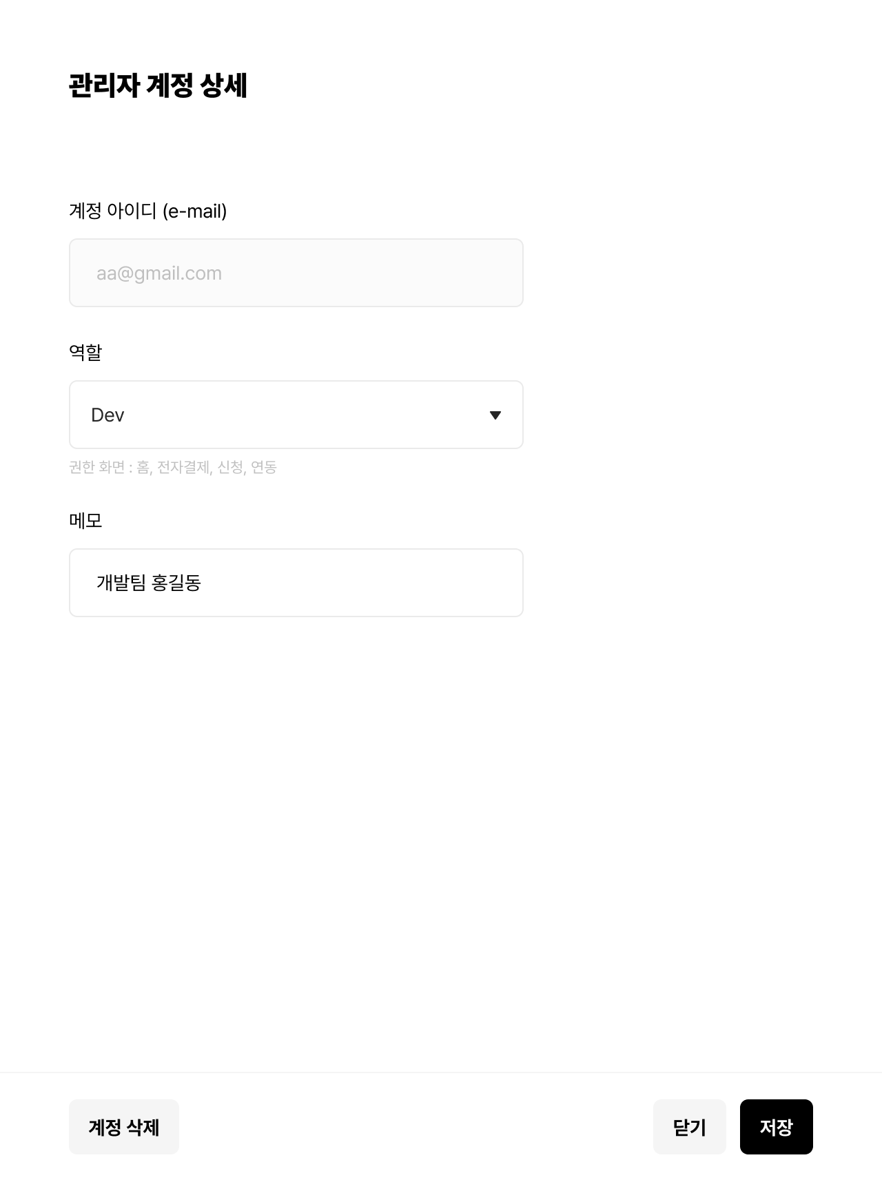 - 결제 연동 기능만 사용이 가능하며, 상점 계정 관리는 조회만 가능합니다.