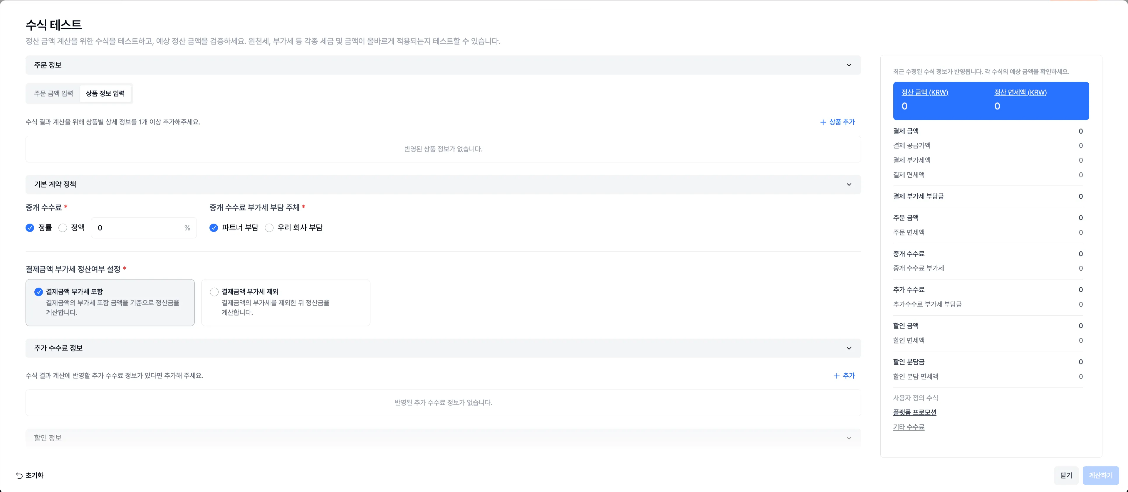 정산 금액 계산을 위한 수식을 미리 테스트하고, 예상 정산 금액을 검증할 수 있는 기능이 출시 되었습니다.